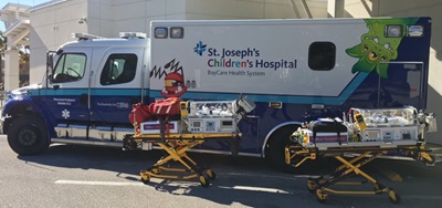 For emergency pediatric cardiac care outside of the hospital, we provide 24-hour access to board-certified pediatric cardiovascular surgeons through our Pediatric and Neonatal Transport Service. The specialized transport team, trained in neonatal and pediatric medicine, travels by dedicated ambulance or medical helicopter to pick up newborns, infants and children under 18 from hospitals in West-Central Florida and brings them for specialized pediatric treatment at St. Joseph’s Children’s Hospital.