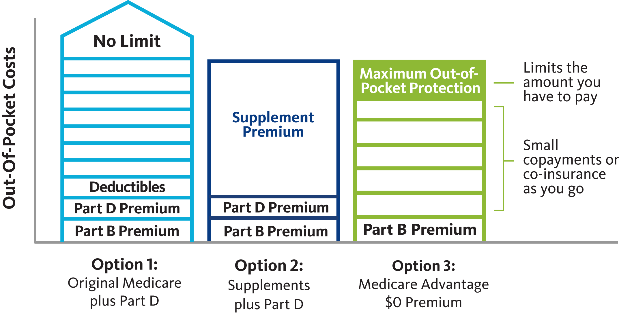 Many Medicare Advantage plans offer $0 premium plans where you “pay as you go” through small copays or coinsurance amounts and only pay for the care you use. The most important thing to note about a Medicare Advantage plan is that, unlike Original Medicare, it also offers an added layer of protection by limiting the amount you pay out of pocket for covered services each year. That way, you’re covered throughout the year, and your savings and retirement are protected should a serious illness or injury occur.