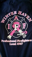 During the month of October 2015, Breast Cancer Awareness Month, the Winter Haven Professional Firefighters raised funds to benefit the Winter Haven Hospital Foundation. The funds are earmarked to help purchase breast imaging equipment as well as provide transportation for disadvantaged patients to and from chemotherapy treatments. The organization sold tee shirts at the price of $10 and 100% of the proceeds were donated to the Winter Haven Hospital Foundation.
